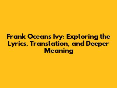 Hey music lovers! Ever gotten lost in the vibes of a song, feeling every word but maybe not fully grasping its meaning? That's totally relatable, right? Today, we're diving deep into Frank Ocean's heart-wrenching track, "Ivy." We'll break down the lyrics, offer a translation for those who might need it, and uncover the emotional core that makes this song so unforgettable. So, grab your headphones, get comfy, and let's get started on this musical journey. This is for all of you who have felt the sting of a complicated romance, the longing for a past love, or just love great music!