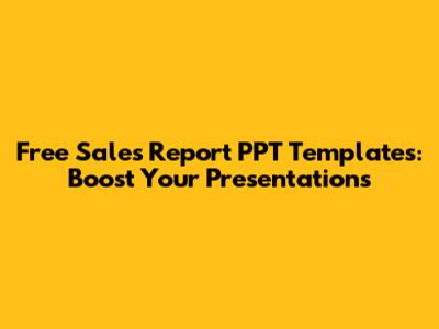 Free Sales Report PPT Templates: Boost Your Presentations