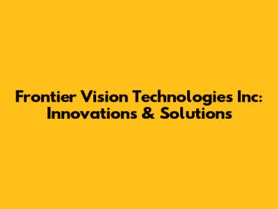 Frontier Vision Technologies Inc: Innovations & Solutions