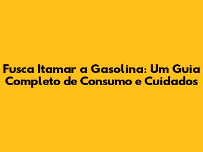 Fusca Itamar A Gasolina: Guia Completo Para Manutenção