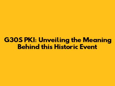 G30S PKI: Unveiling The Meaning Behind This Historic Event