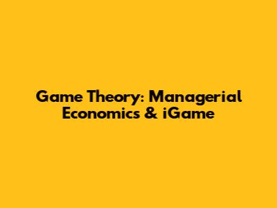 Game Theory: Managerial Economics & IGame