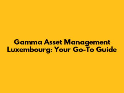 Gamma Asset Management Luxembourg: A Comprehensive Guide