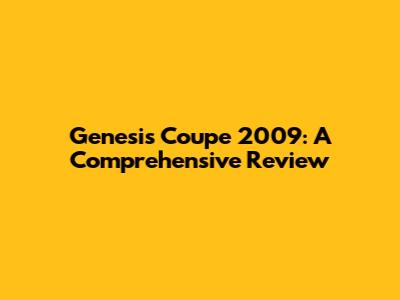 Genesis Coupe 2009: A Comprehensive Review