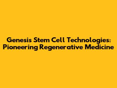 Genesis Stem Cell Technologies: Pioneering Regenerative Medicine
