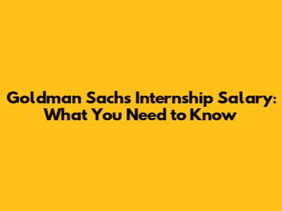 Goldman Sachs Internship Salary: What You Need To Know