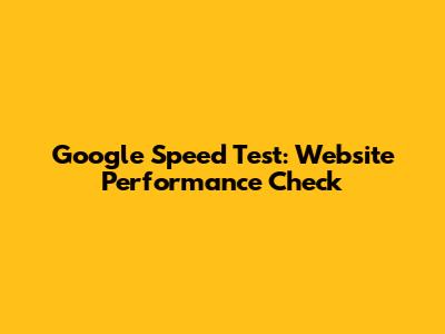 Google Speed Test: Website Performance Check