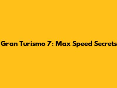 Gran Turismo 7: Max Speed Secrets