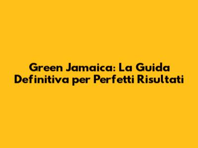 Green Jamaica: La Guida Definitiva Per Perfetti Risultati