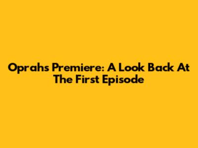 Oprah's Premiere: A Look Back At The First Episode