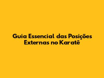 Guia Essencial Das Posições Externas No Karatê