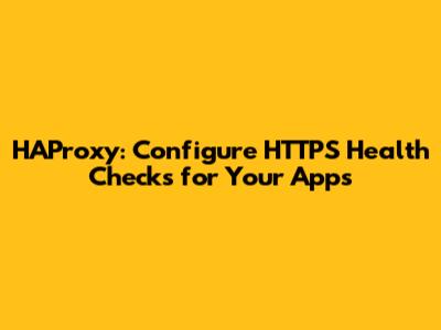 HAProxy: Configure HTTPS Health Checks For Your Apps