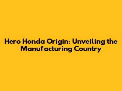 Hero Honda Origin: Unveiling The Manufacturing Country