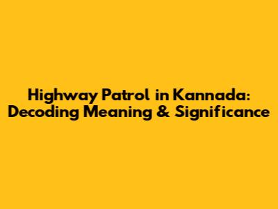 Highway Patrol In Kannada: Decoding Meaning & Significance