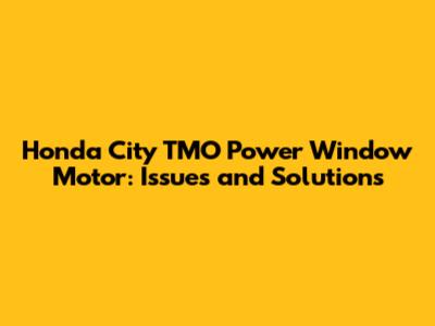 Common Issues with Honda City TMO Power Window Motors