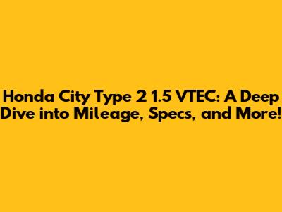 Honda City Type 2 1.5 VTEC: Mileage, Specs & More!