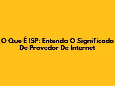 O Que É ISP: Entenda O Significado De Provedor De Internet