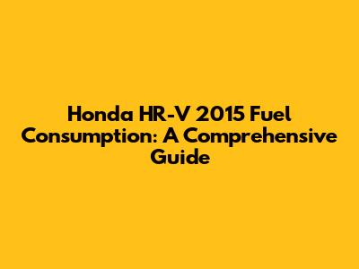 Factors Affecting the 2015 Honda HR-V's Fuel Consumption