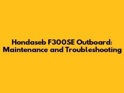 Hondaseb F300SE Outboard: Maintenance And Troubleshooting