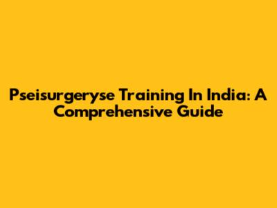 Pseisurgeryse Training In India: A Comprehensive Guide