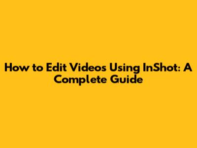 How To Edit Videos Using InShot: A Complete Guide
