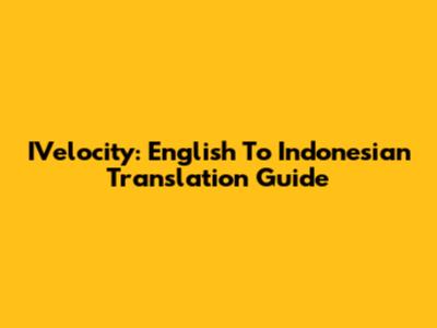 IVelocity: English To Indonesian Translation Guide