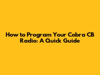 How To Program Your Cobra CB Radio: A Quick Guide