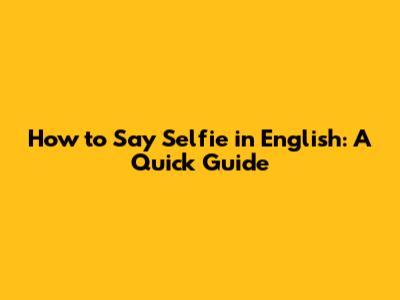 How To Say Selfie In English: A Quick Guide