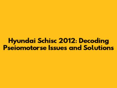 Hey guys! Let's dive into the Hyundai Schisc 2012, specifically tackling those tricky “pseiomotorse” problems. If you're scratching your head, wondering what that even means, don't worry, we'll break it down. This article is designed to help you understand what might be going wrong with your Schisc 2012 and, more importantly, how to get it fixed. So, buckle up, and let's get started!