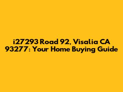 Hey there, future homeowner! If you're eyeing a property at i27293 Road 92, Visalia, CA 93277, then you're in the right place. This guide is your ultimate companion to navigating the exciting world of real estate in this specific locale. Buying a home is a huge decision, and it's essential to be well-informed before taking the plunge. We'll delve into everything you need to know about this address, the surrounding neighborhood, and what it's like to live in Visalia. From market trends to local amenities, we’ve got you covered. So, grab a cup of coffee (or your favorite beverage), sit back, and let's explore i27293 Road 92, and the charming city of Visalia.