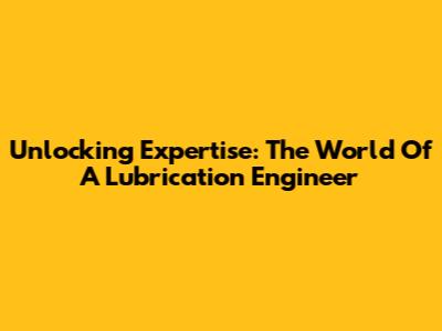 Unlocking Expertise: The World Of A Lubrication Engineer
