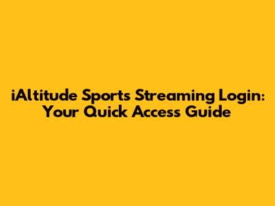 IAltitude Sports Streaming Login: Your Quick Access Guide