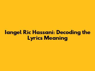 Iangel Ric Hassani: Decoding The Lyrics Meaning