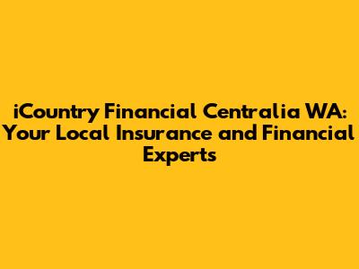 Hey guys! Are you looking for reliable insurance and financial services in Centralia, WA? Look no further! This article dives deep into iCountry Financial in Centralia, WA, making sure you have all the info you need to make smart choices about your financial future. We're going to cover everything from what iCountry Financial offers to why they're a great choice for folks in the Centralia area. Let's get started!