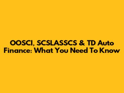 OOSCI, SCSLASSCS & TD Auto Finance: What You Need To Know