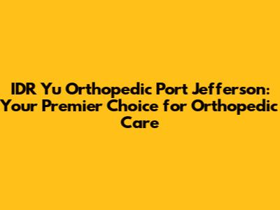 IDR Yu Orthopedic: Top Choice In Port Jefferson