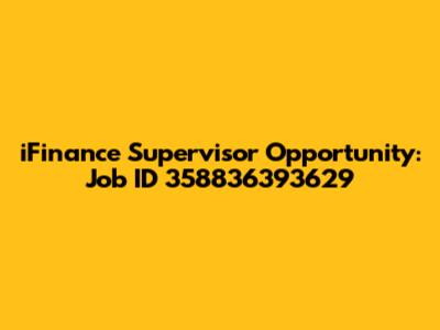 IFinance Supervisor Opportunity: Job ID 358836393629