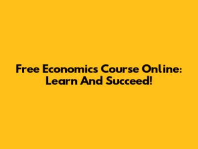 Free Economics Course Online: Learn And Succeed!