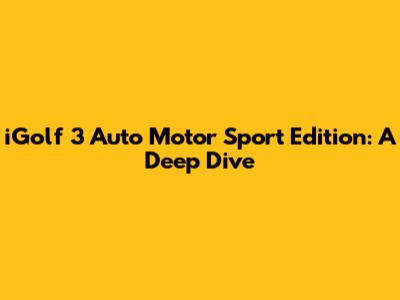IGolf 3 Auto Motor Sport Edition: A Deep Dive