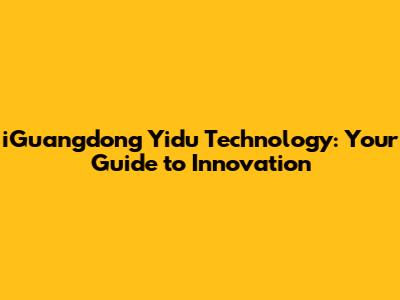 IGuangdong Yidu Technology: Your Guide To Innovation