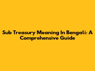 Sub Treasury Meaning In Bengali: A Comprehensive Guide
