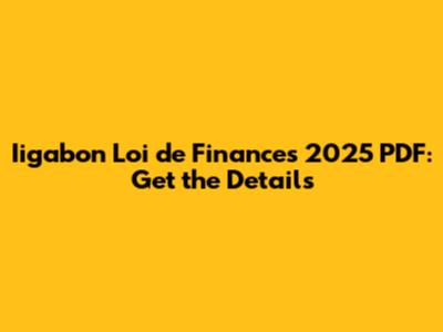 Where to Find the Official Iigabon Loi de Finances 2025 PDF