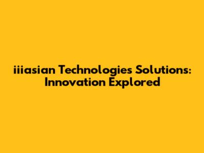 Iiiasian Technologies: Innovative Solutions Explored