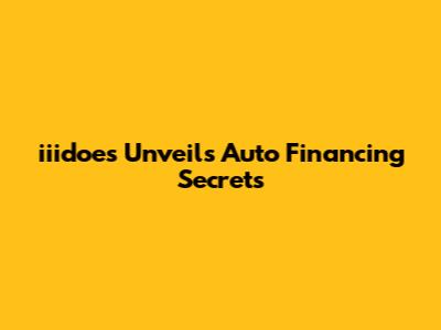 Iiidoes Unveils Auto Financing Secrets