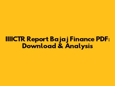 IIIICTR Report Bajaj Finance PDF: Download & Analysis