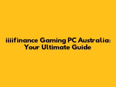 Iiiifinance Gaming PC Australia: Your Ultimate Guide