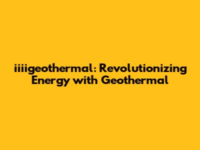Iiiigeothermal: Revolutionizing Energy With Geothermal