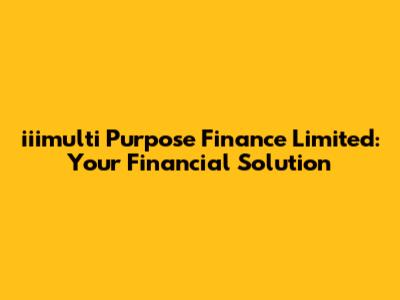 Iiimulti Purpose Finance Limited: Your Financial Solution