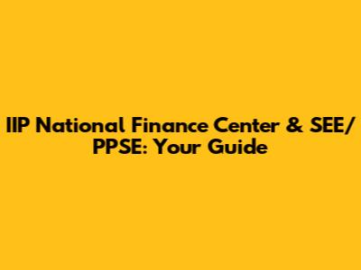 IIP National Finance Center & SEE/PPSE Explained