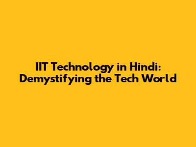 IIT Technology In Hindi: Demystifying The Tech World